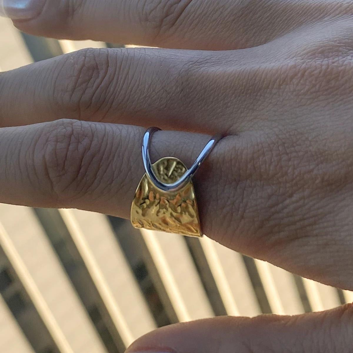 "Dual-Tone Textured Wrap Ring with Sun Motif"