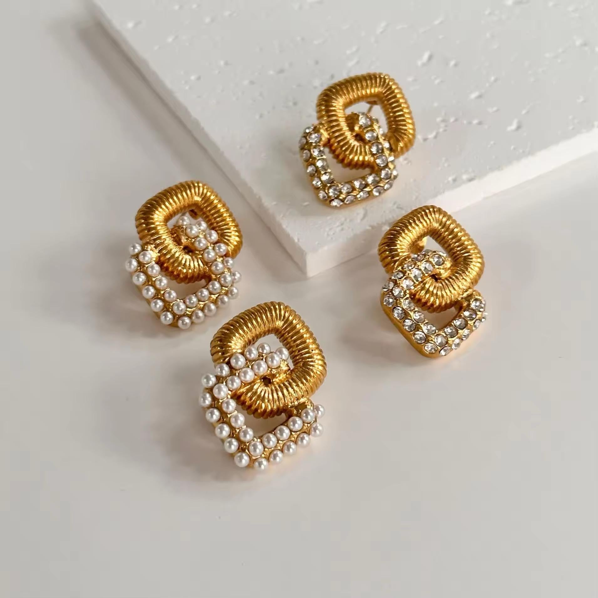 Glided Loop Earrings - Gold Statement Hoops with Pearl Accents