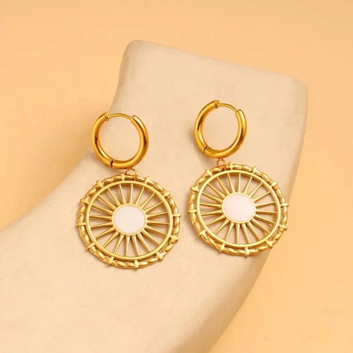Golden spoke drop Earrings - radiate elegance with every turn